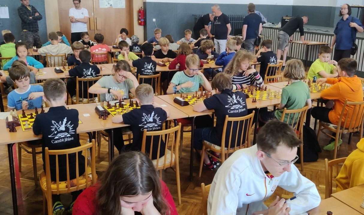 Ve Žďárské sokolovně se v sobotu 21. 5. 2022 konal KP mládeže v rapid šachu, který se hrál souběžně ve dvou samostatných turnajích. Vedle tří hráčů z našich šachových kroužků, se jej zúčastnilo čtrnáct hráčů Gambitu Jihlava, což bylo zdaleka nejvíc ve srovnání z ostatními šachovými kluby. A vzhledem k tomu, jaké logo nesou naše klubová trička do nichž byla většina našich hráčů oděna, mohl při pohledu do hracího sálu vzniknout dojem, že Sokolovna byla plná ježků 🙂