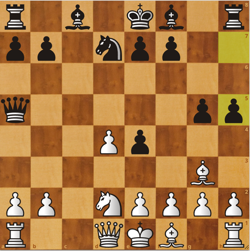 10. tah …h5. Přesně tohle chceme vidět. Souboje nejlepších velmistrů jsou sice hezké, ale tohle má takový ten lidský aspekt, kde se může stát vše. Dynamická pozice, šance na obou stranách.