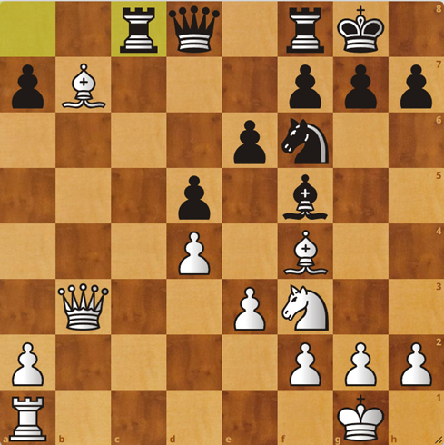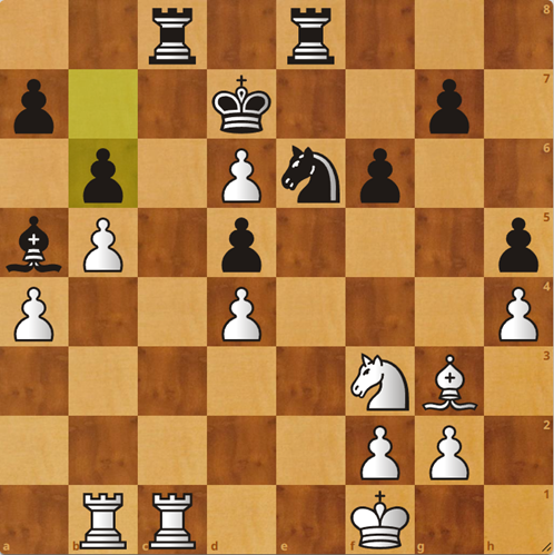 Pozice po 26….b6 a vzniká setsakrametsky zlá pozice pro bílého. Nápady? Kozelec! Kůň a střelec mohou jen dozadu, věže nikam. Engine radí převin Jg1 se skokem na e2. Máme pika v hubě, ale co dělat. Tony nakonec pouští černou věž na c-sloupec a následně už není obrany. Černý si skvělou poziční hrou vychutnal syslí snahy.