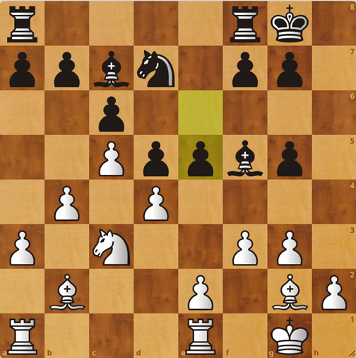 Hrál se dámský gambit, bílý staví domečkové střelce, pozice se zavře po přetáhnutí pěšce na c5, až vznikne zajímavá pozice, kde bílý může prosadit svůj střed. Hleďme zde!