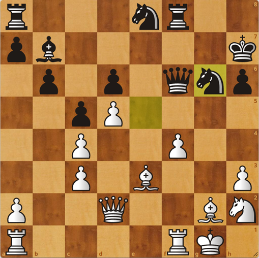 Přátele, než si adoptujete z naší nabídky, vyřešte tento diagram. Bílý na tahu. Chvilka přemýšlení, čekám, pořád čekám. Konec! Co hrajete? Šance zamáčknout černého je tahem f5! Což se nestalo. Následovaly další šance, ale to f5 bylo zakleté. Nakonec se ukázalo, proč černý zvolil zavřeného střelce, protože ho použil k zisku figury. Kh1, Je6 a Sg2 se přesunul na e2 a vazba byla na světě. Jednotahová hrubka a konec zvonec. 3-2
