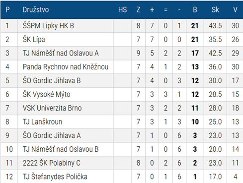 I přes snahu něco zakousnout se nám to nepovedlo. 3 prohry a žádná výhra svědčí o plných pupcích bodů z minulých kol a velmi malého apetitu. Prohráli jsme jednoznačně. Další kolo jedeme na derby B týmů do Náměště. Jediným pozitivem tohoto kola je konečně výhra A-družstva právě v Náměšti.