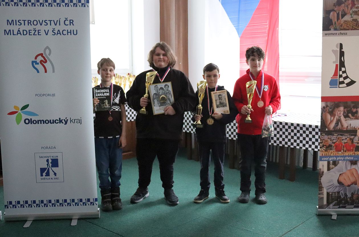 Honzík turnaj začal trochu nešťastnou prohrou černými, když nestačil na Tsyrena Berdnikova, který skončil až v druhé polovině s pouhými třemi body. Pak ale nastartoval a začal se drát směrem na čelo tabulky. V sedmém kole pak trpělivou hrou dokázal přehrát nasazenou jedničku Edvarda Koláře a uštědřil mu jedinou porážku a ztrátu bodů v turnaji! Tím se také usadil na průběžném třetím místě. V osmém kole však narazil na Vojtu Velíma, který ho umotal ve výměnném caro-kanu. Výhra v posledním kole rozsvítila na Honzíkově kontě 6 bodů a čekalo se na pomocné hodnocení. Ačkoliv jsme všichni doufali, že tady to „cinkne“, tak bohužel o jeden bod bucholzu vyšlo lépe pomocné hodnocení druhému šestibodovému hráči, Kožušníkovi, a na Honzíka tak zbyla nepopulární bramborová. I přesto gratulujeme k parádnímu výsledku!