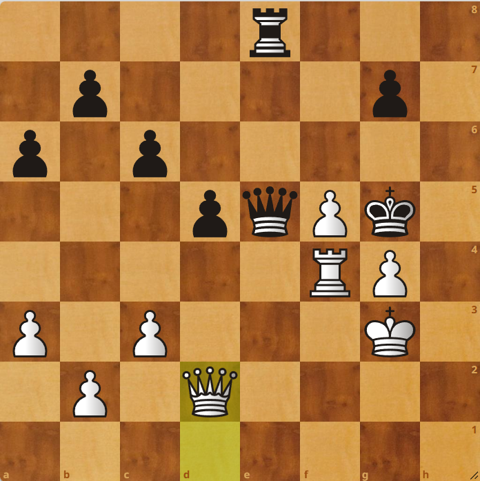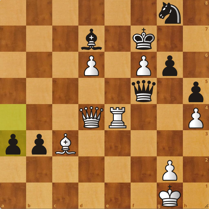 5. šachovnice: 50. Dc4, Se6 51. Vxe6 Dxe6 52. Dc7 Je7 53. d7! Bílý kryje věčňák a staví dámu