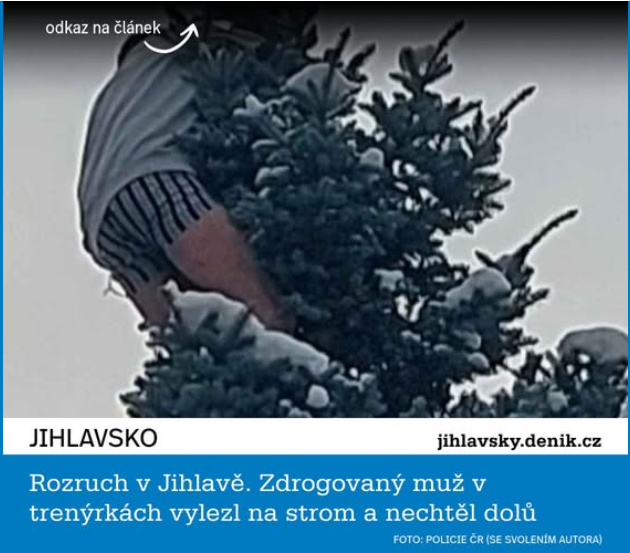 Neštěstí se stalo souběžně během zápasu i jistému gentlemanovi, který si v Jihlavě odložil oblečení, posilnil se vánočním perníčkem a vyšplhal na nejbližší smrk, aby si mohl vychutnat celou atmosféru z výšky. Článek zde: https://1url.cz/2J5BR Jisté je, že to nebyl nikdo z Vysokého Mýta, neboť všichni hráli.