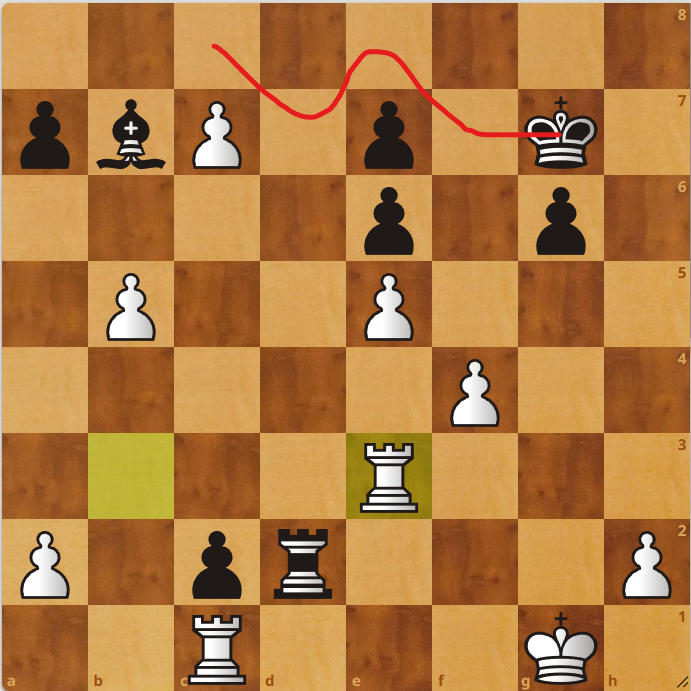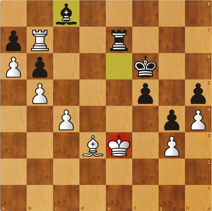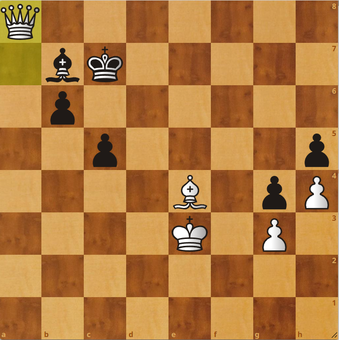Černý může dát střelcem šach, potom sebrat věž na b2 s dalším plánem postavit si dámu. Stihl by bílý bez věže za pomoci pěšáků doběhnout na poslední řadu? Zajímavá podívaná, která se naštěstí nestala.