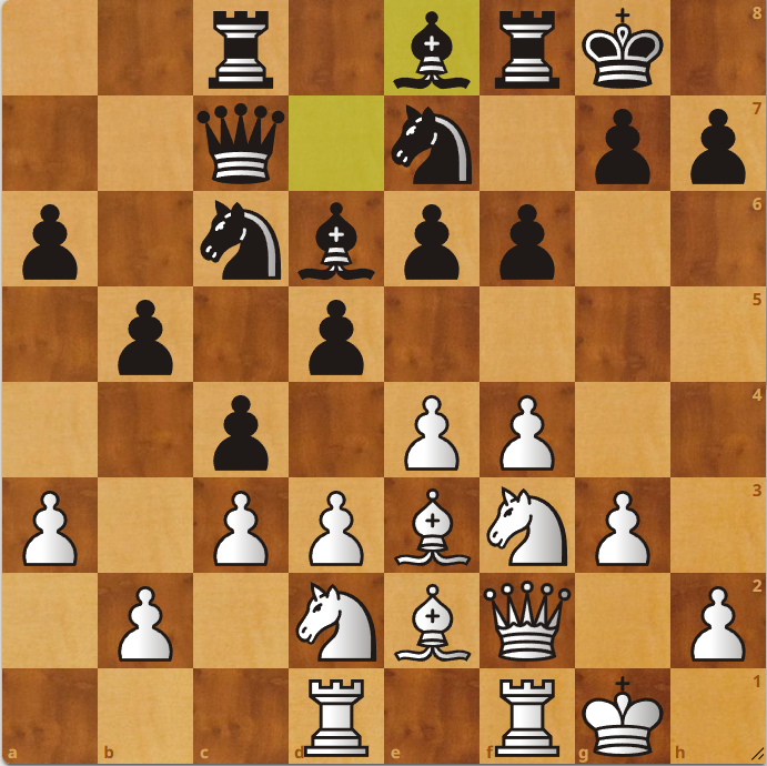 Martin Policar: Vxe7, Kxe7 a postup c5, b6, a7. Bílý vezme na c5 a následně vymění svého pika z a7 za střelce.