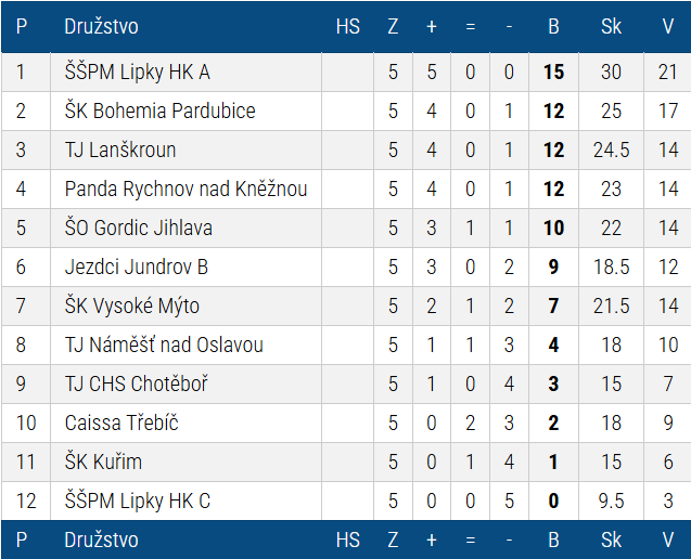 Končíme tento rok na 5. místě v tabulce s 10 body.
