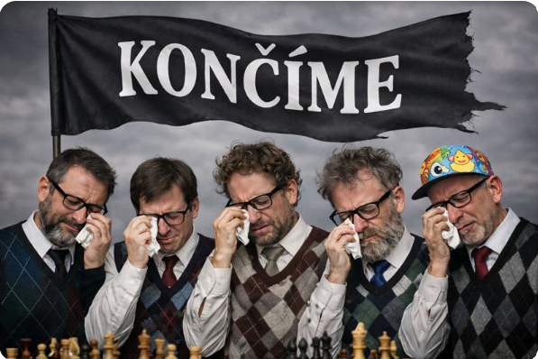 Už úvod byl komický. Domácí se na nás vytasili se základní sestavou (bez Jirky Tůmy) a hned se čtyřmi hosty, po našem přátelském upozornění sehnali diváka, který doma slíbil, že bude hned zase zpět. Končil po 15. hodině s prohrou, doma ho možná čekal váleček na těsto a na šachy bude mít útrum nejmíň do konce roku. Bez partie šel na párek Šimon Lang. Tyto změny nás stály 2 zápisy o utkání. Drobné zmatky a škrtance na naší soupisce jsem způsobil i já. Poslední změnou bylo naše prohození šachovnic 6 a 7 a elegantní šipky. Bereme třetí zápis a už je vše v pořádku.